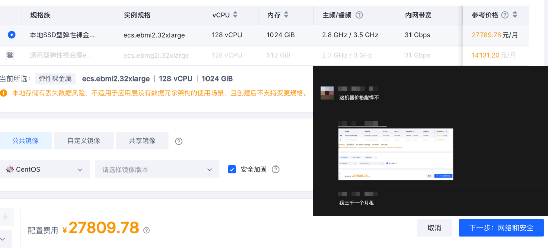 然而,只要你稍微把配置往上抬哪怕一丁点儿,核月单价就出现了数量级的变化,干到了二三十~一百来刀,最高可以翻到几十倍 —— 算上惊悚的 EBS 价格还要再翻番。用户只有在看到突然出现的天价账单时,才会意识到到底发生了什么。