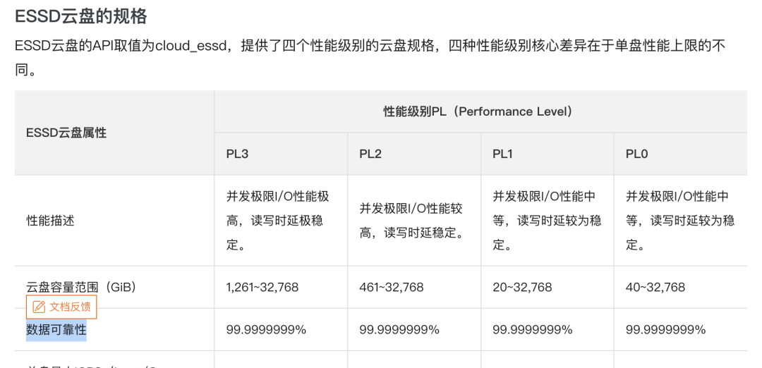 数据是许多企业的生命线,云盘是公有云上几乎所有数据存储的基石,所以让我们以云盘服务为例。许多云服务提供商在其产品介绍中都会宣称他们的云盘服务具有 9个9 的数据可靠性【1】。然而当查看其 SLA 时,就会发现这些最为重要的承诺压根没有写入 SLA 【2】。