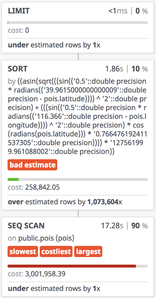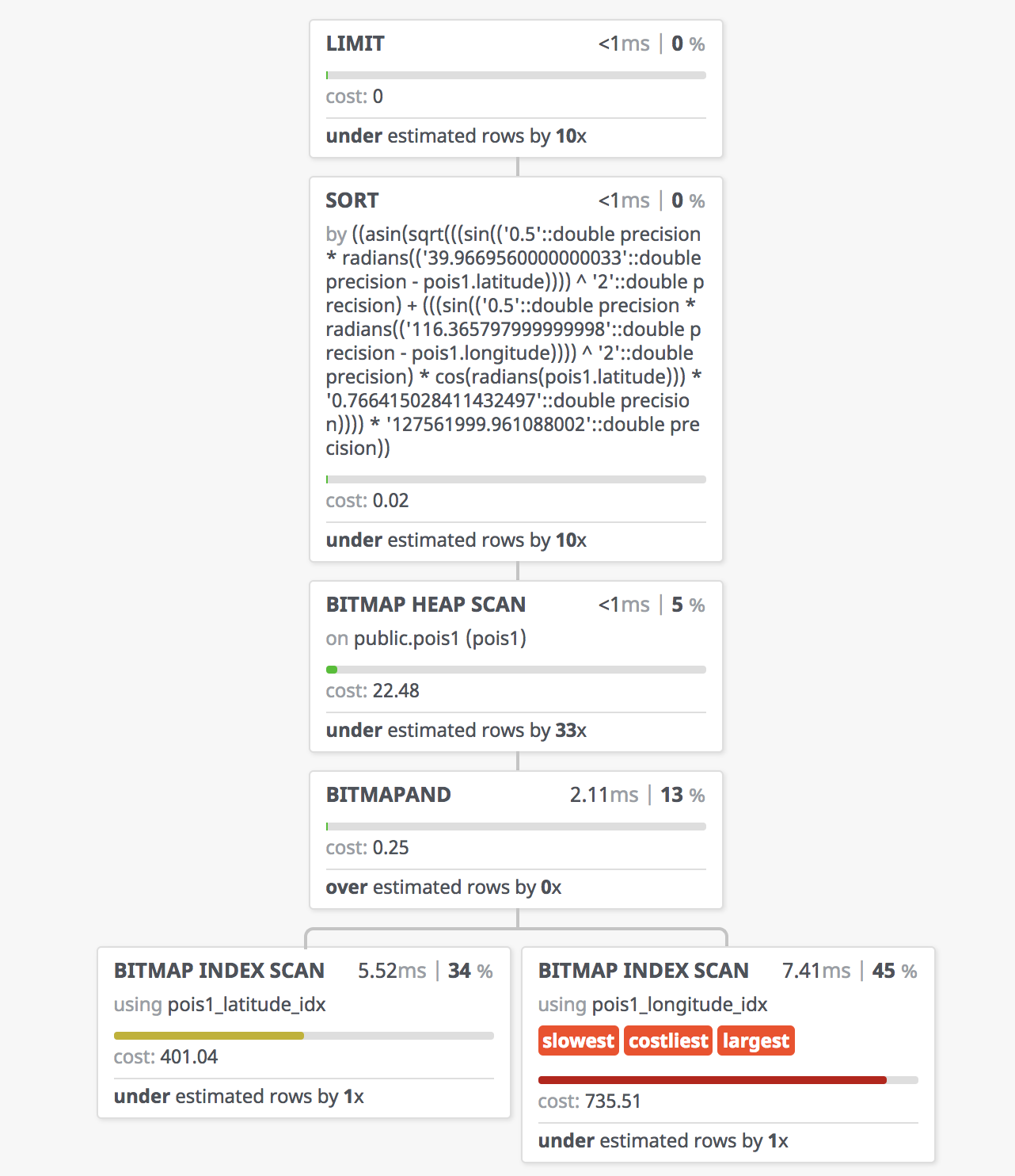 ORDER BY position <-> ST_GeogFromText('SRID=4326;POINT(116.365798 39.961576)') LIMIT 10;
