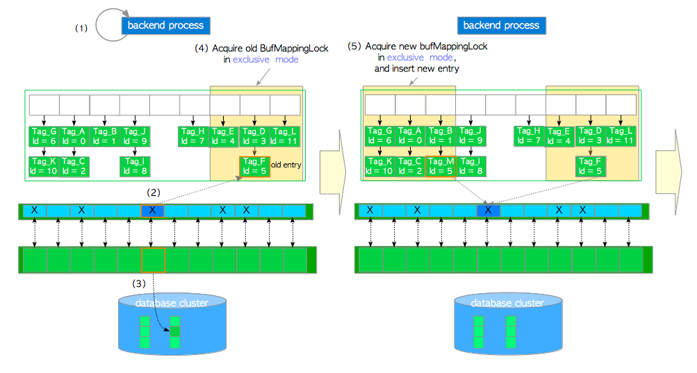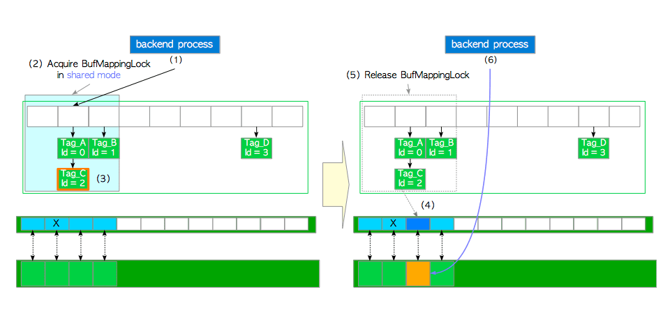buffer_id=5描述符上的共享content_lock和独占io_in_progress_lock(在步骤6中释放)。 -
