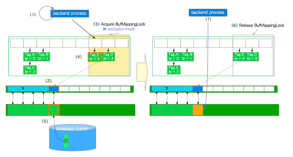 buffer_tag并查找缓冲表。在本例中假设buffer_tag是'Tag_M'(且相应的页面在缓冲区中找不到)。 -