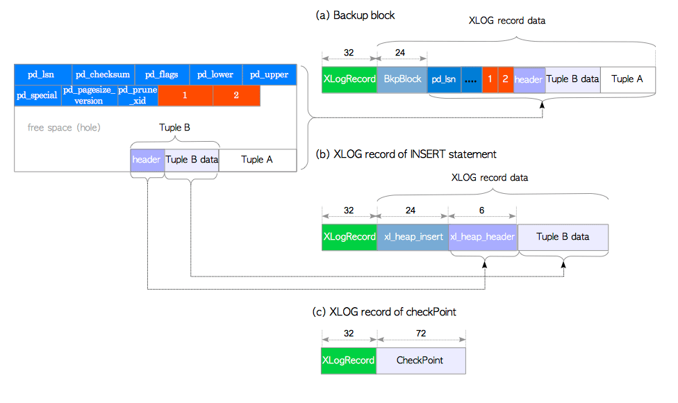 为了应对系统失效,PostgreSQL将所有修改作为历史数据写入持久化存储中。这份历史数据称为XLOG记录(xlog record)或WAL数据(wal data)。