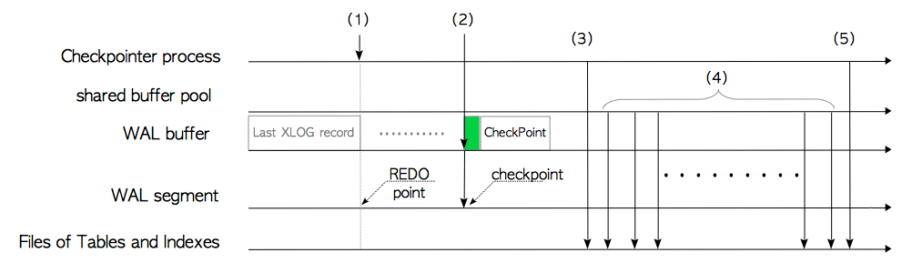 - 设想当操作系统失效发生时,尽管共享缓冲区中的所有数据都丢失了,但所有页面修改已经作为历史记录被写入WAL段文件中。