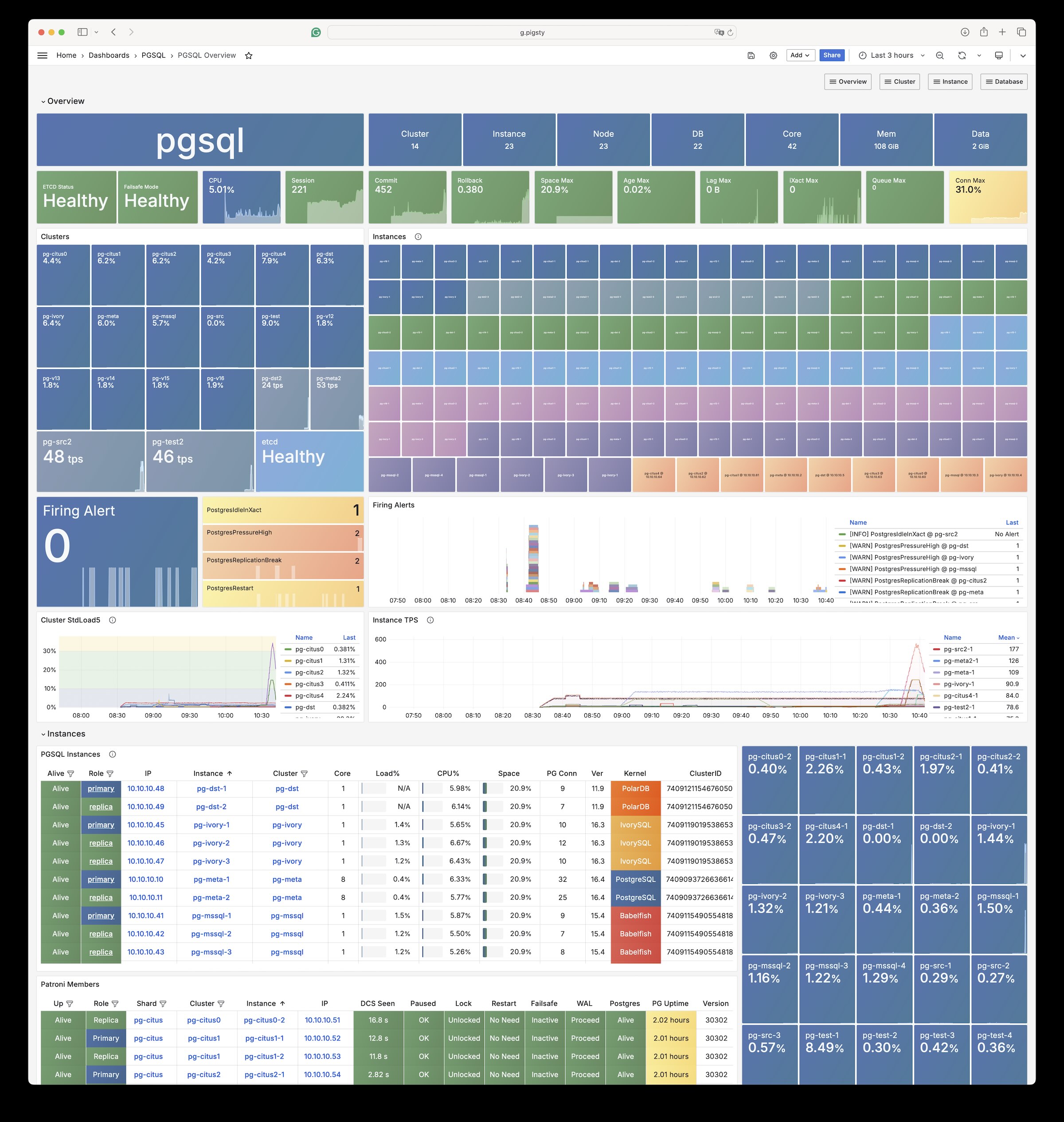 我们最近发布的开源 RDS PostgreSQL 方案 —— Pigsty 最近就支持了这些 PG 替换内核,允许用户在一套 PostgreSQL 部署中提供 MSSQL,Oracle,MongoDB,Firebase,MongoDB 的兼容性替代能力。