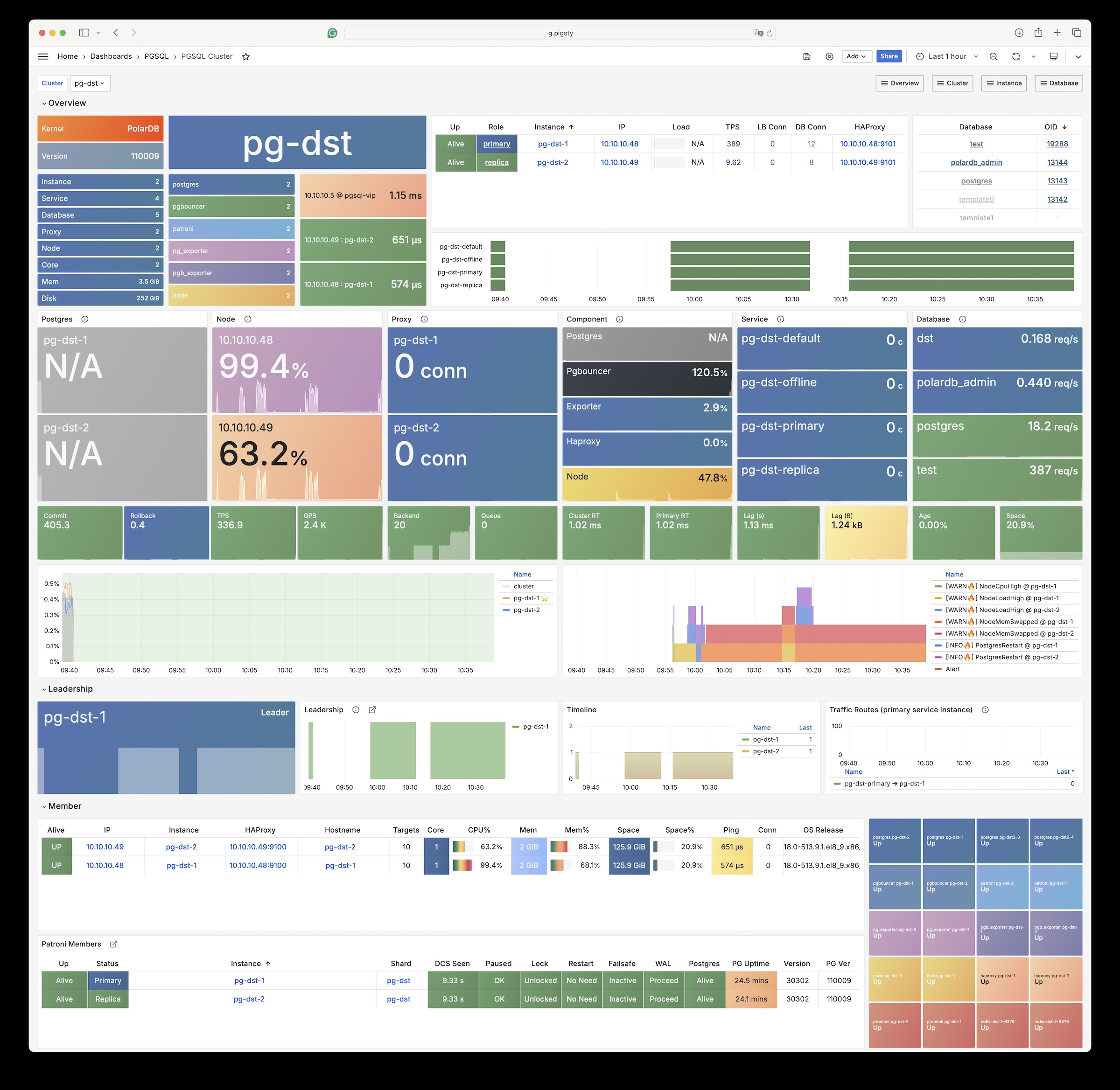 - Pigsty 专业版提供 PolarDB 离线安装支持,扩展插件编译支持,以及针对 PolarDB 集群进行专门适配的监控与管控支持。